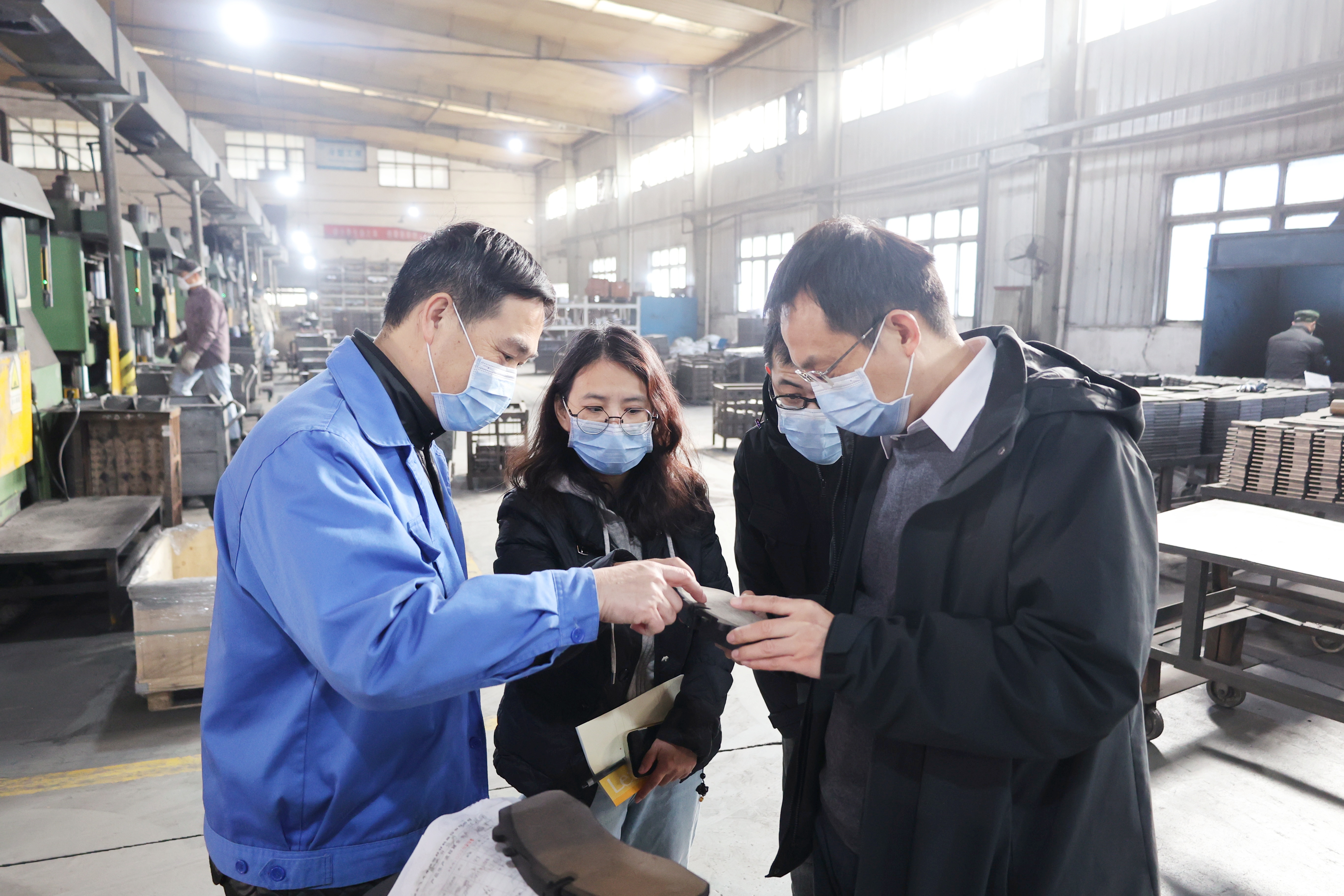 为精准把脉企业需求,省质检院组织专家团队先后深入湖北飞龙摩擦密封材料股份有限公司、湖北得宜智精密机械有限公司、枣阳神虎摩擦材料有限公司等链上企业生产一线,实地察看生产工艺流程,与技术人员交流座谈。